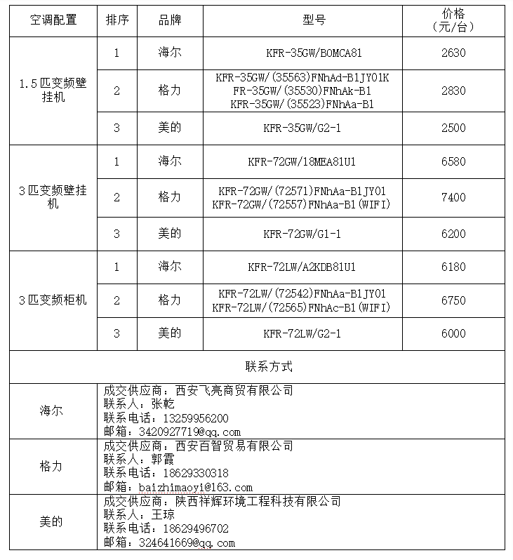 (二)空調信息查詢。經辦人在本通知前款查詢空調品牌、型號、價格、成交供應商等信息,確定供應商、品牌型號及數量。