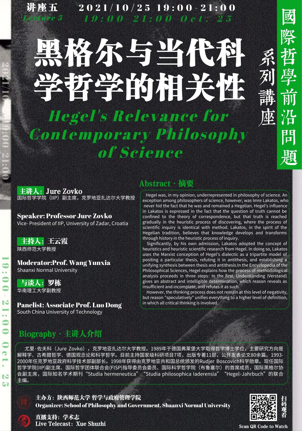 國(guó)際哲學(xué)前沿問題系列講座“黑格爾與當(dāng)代哲學(xué)”之“黑格爾與當(dāng)代科學(xué)哲學(xué)的相關(guān)性”