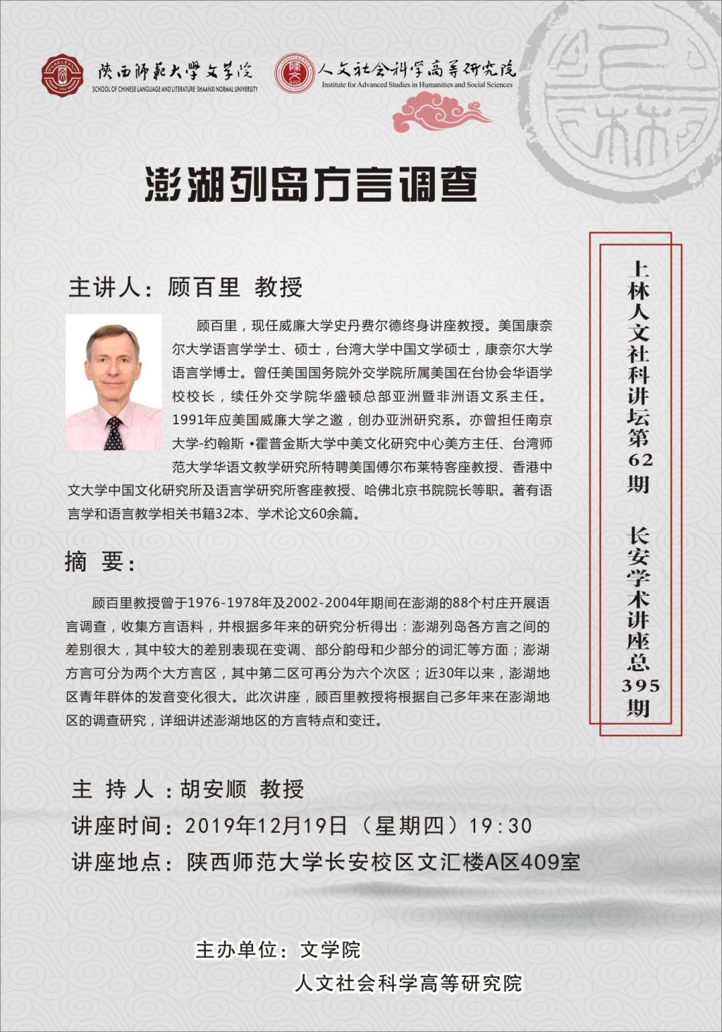 上林人文社科講壇第62期:澎湖列島方言調(diào)查