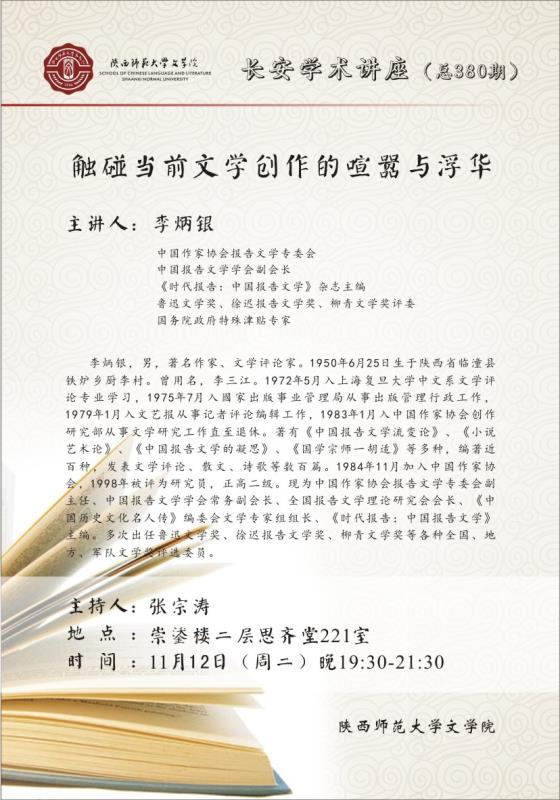 長安學(xué)術(shù)講座(總380期):觸碰當(dāng)前文學(xué)創(chuàng)作的喧囂與浮華