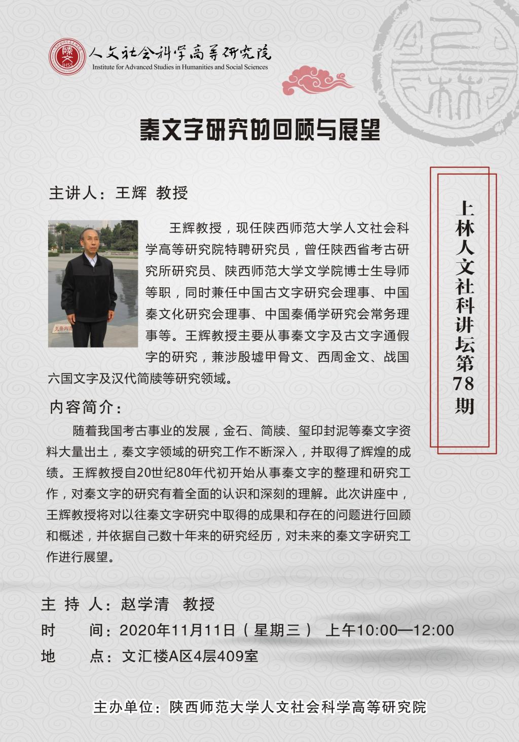 上林人文社科講壇第78講:秦文字研究的回顧與展望