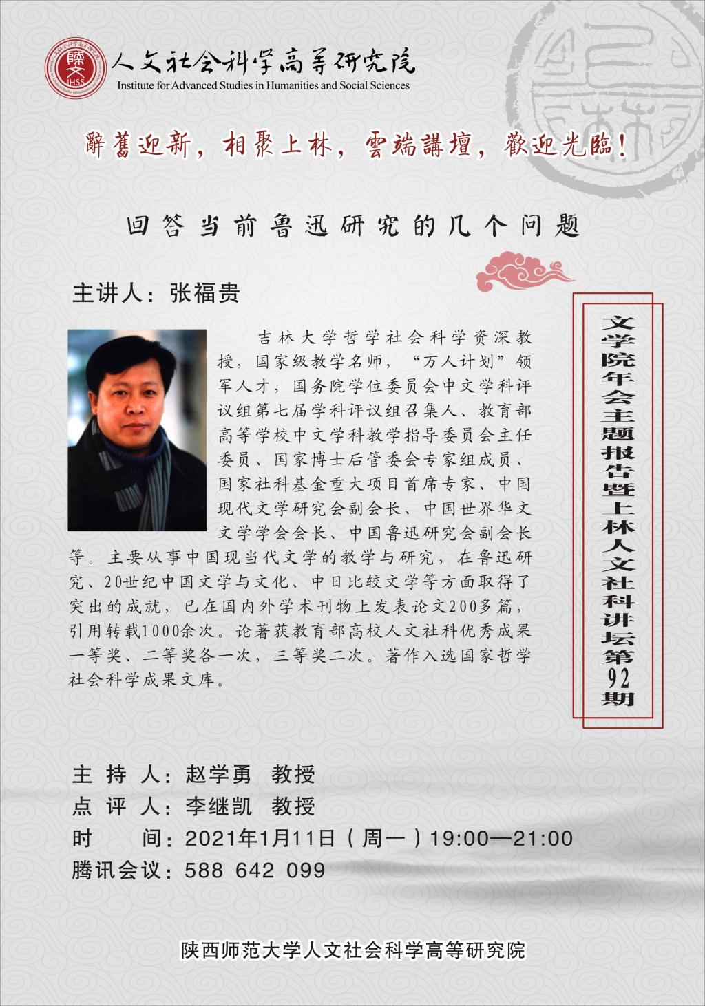 文學(xué)院年會(huì)主題報(bào)告暨上林人文社科講壇第92期:回答當(dāng)前魯迅研究的幾個(gè)問題