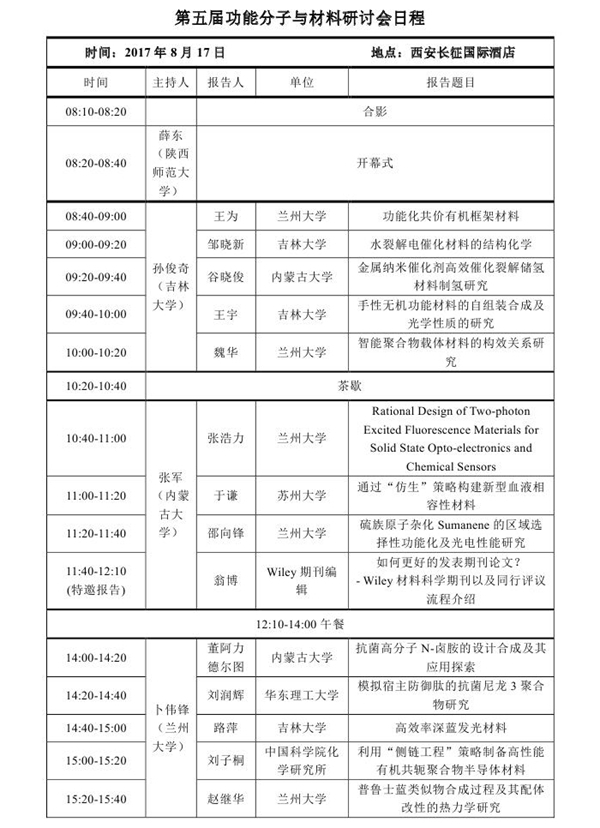 活動類別:第五屆功能分子與材料研討會日程