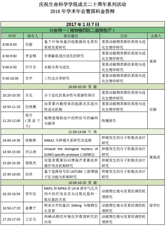 活動類別:慶祝生命科學學院成立二十周年系列活動-2016年學術年會暨國科金答辯