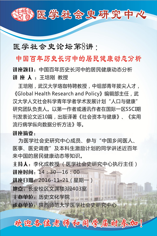 講座題目:醫(yī)學(xué)社會史論壇第8講: 中國百年歷史長河中的居民健康動態(tài)分析