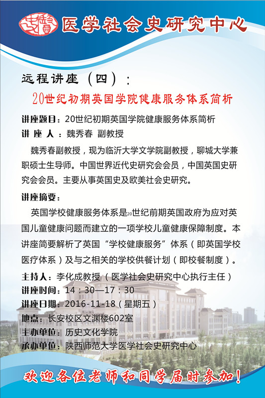 講座題目:醫(yī)學(xué)社會(huì)史研究中心遠(yuǎn)程講座4: 20世紀(jì)初期英國學(xué)院健康服務(wù)體系簡析